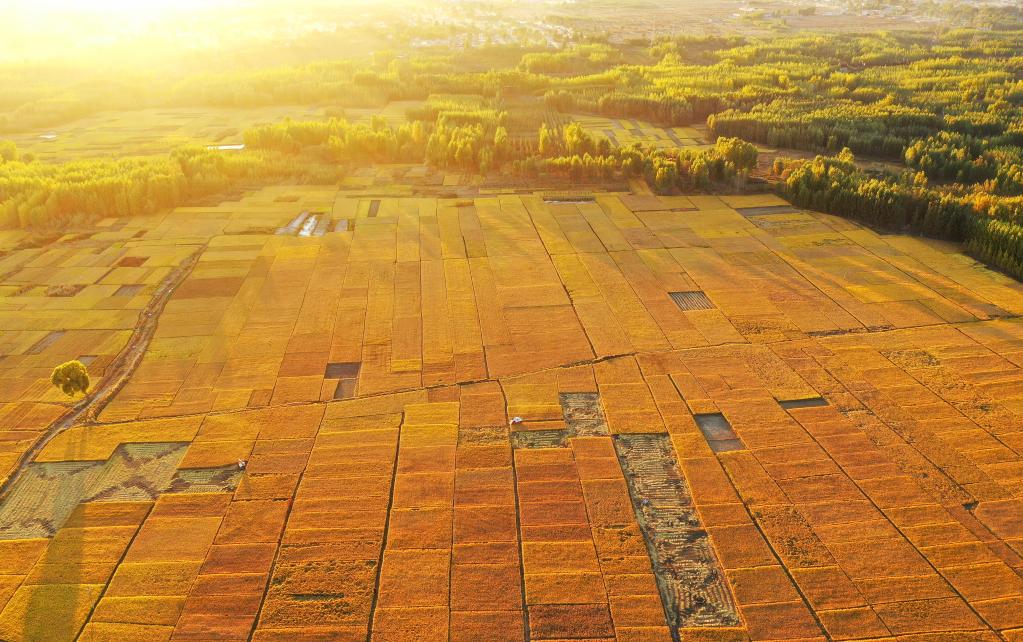 2020年10月18日在河北滦州市古城街道蒋庄村拍摄的稻田(无人机照片)。新华社记者 牟宇 摄