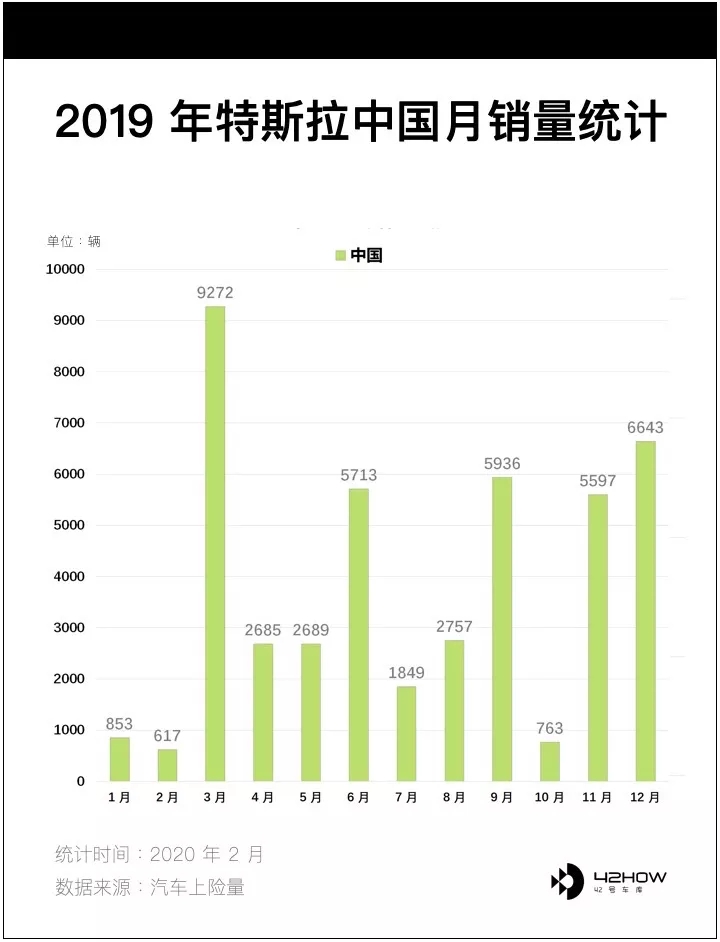 这是特斯拉 2019 年中国市场的月交付量,可以发现到每个季度的最后一个月销量都会大幅上升,因为特斯拉为了冲销量,都会在每个季度的最后一个月推出一些促销政策,所以想提高特斯拉在中国的销量很简单,降价。