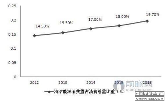 图表:2012-2016年我国清洁能源消费量占消费总量比重(单位:%)
