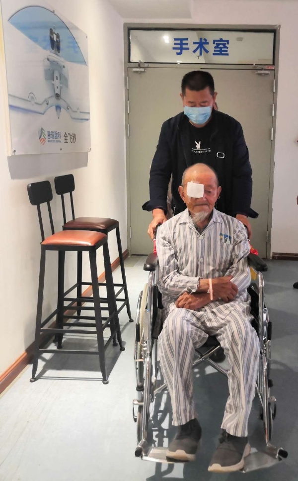 “原本想着父亲年纪大了,就不做手术了,但他的情况越来越糟,7月15日当天眼前一片红,7月16日,我们就赶紧把他送到医院,现在手术很顺利,我们也放心了!”7月17日,112岁的马爷爷在76岁儿子的搀扶下,在昆明普瑞眼科医院接受白内障手术治疗,手术时长约7分钟。