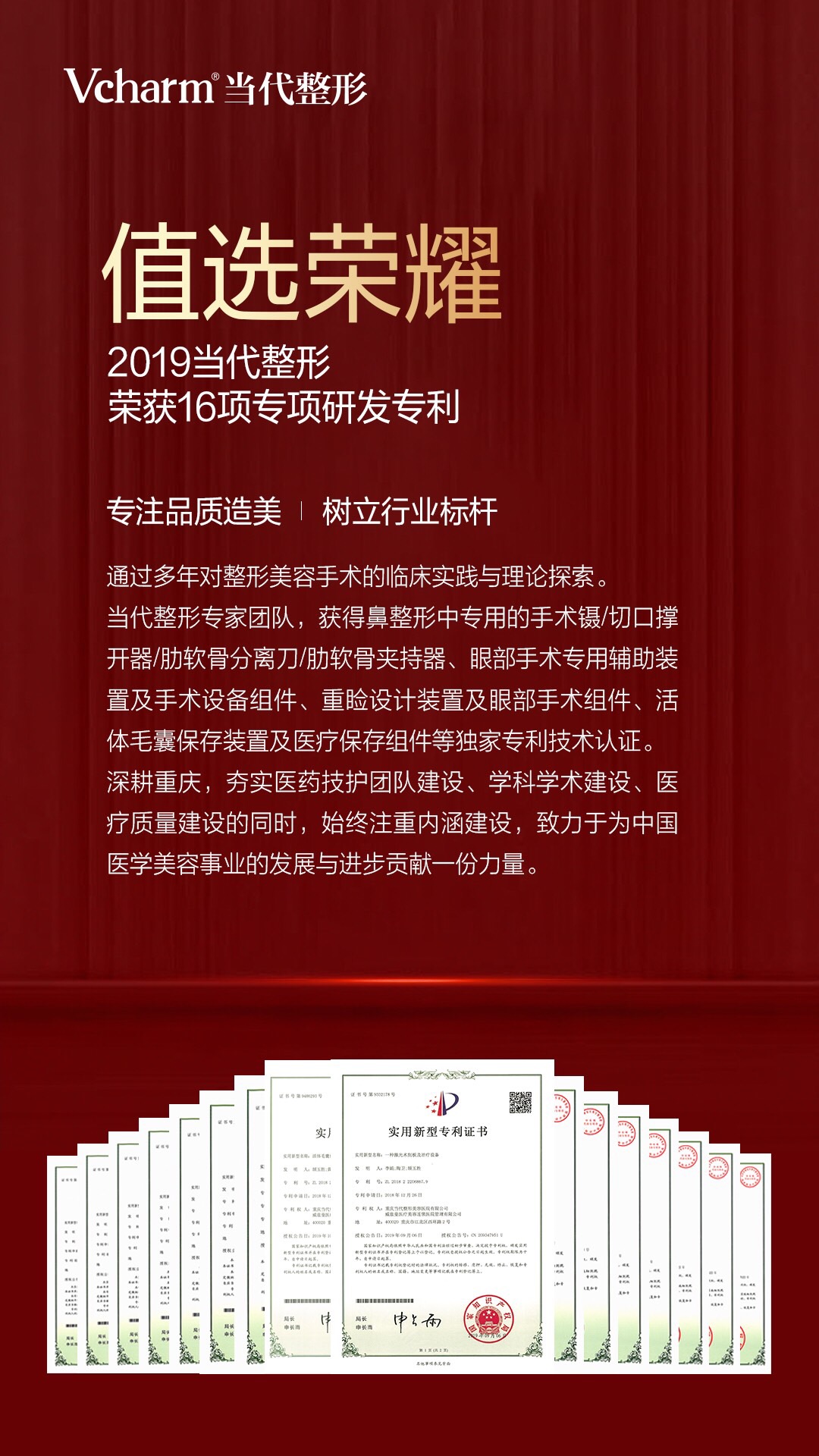 当代整形眼鼻整形以促进眼鼻整形专业化、规范化、标准化发展为己任。其具有丰富临床经验的整形外科医师团,不断学习国内外的新型医疗技术,取长补短,致力于为有眼鼻整形需求的求美者提供可靠、创新有效的项目产品和高质量高水准的服务体验。同时2019年当代整形荣获16项专研项研发专利,专注品质造美,树立行业标杆。