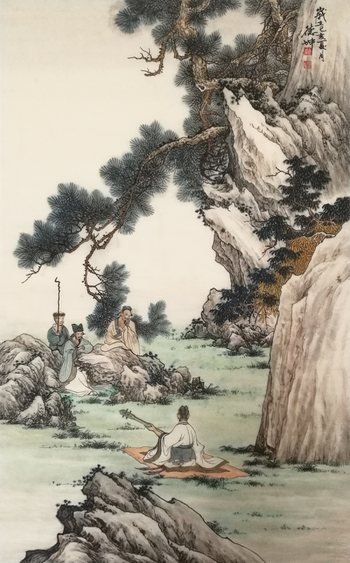 仿古国画 林德坤手绘真迹国画新品《松下雅聚》 作品来源:易从网