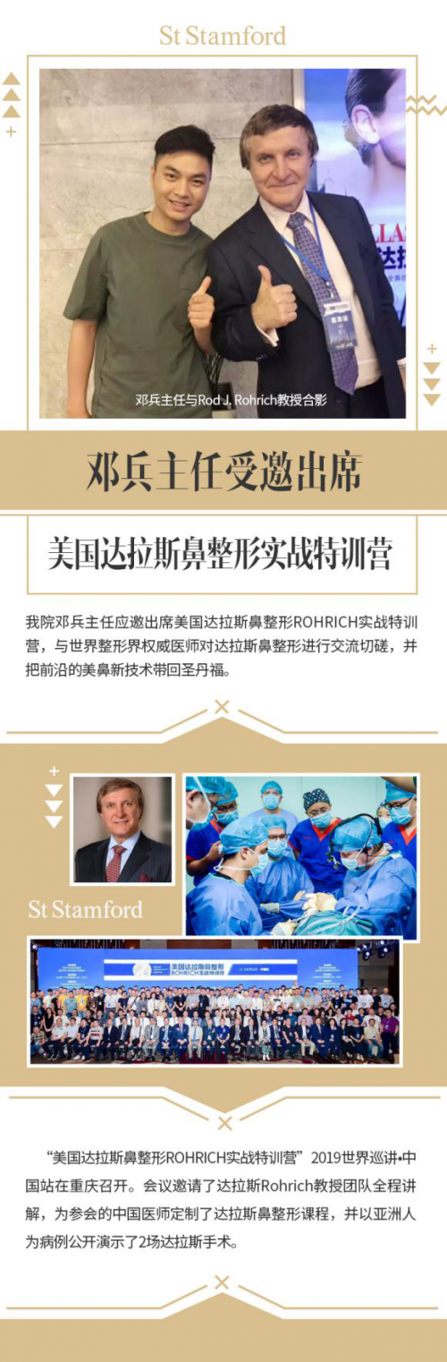 邓兵,成都圣丹福整形美容医院国际整形外科主任。作为为数不多参加美国佛罗里达州奥兰多美国鼻整形术研讨会的国内专家,邓主任的鼻整形技艺亲承了国外最先进的研究技术。加之公立医院的就职经历,在丰富的临床病例基础上,师承亚洲鼻王,将北美与亚洲最高超的鼻整形技艺相融合。其主导的院内鼻项目已为千名求美者重塑自信之美,是院内最受欢迎的鼻整形医生。