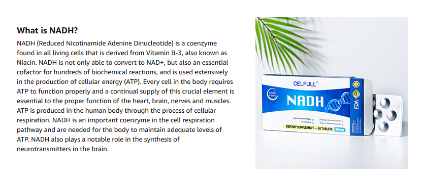赛立复线粒体素NADH在李嘉诚投资的“第一代抗衰产品”NR和哈佛发现的“明星抗衰物质”NMN的基础上,进一步改良提升,在人体内除了可以增加“抗衰因子”NAD+的水平,还分解出一个特种生物氢,并且增加线粒体的ATP(能量),功能更强大。