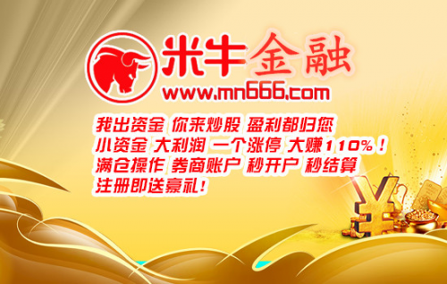 米牛金融是国内领先的互联网股票配资平台,是一家专注于股票投资、金融服务、及资产管理的专业机构,平台以帮助用户安全、高效和快速财富增值为主线,客户可以通过本平台获得10倍杠杆,可配1000万操盘资金,全程网络操作,高效便捷。米牛金融专业股票配资1-10倍杠杆,1000元起配,利息低至0.5分,10秒钟快速开户.