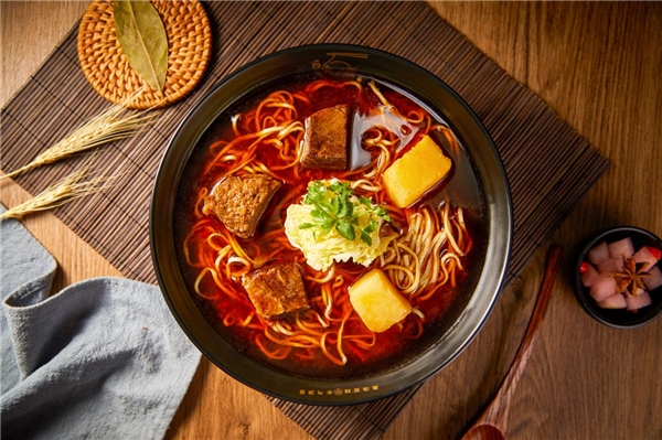 一家来福不仅有广式的汤底,还有川式的经典味道。在“浇头”的选择上,一家来福非常严谨。牛,选择澳洲黑牛,所有的牛肉、牛筋、牛杂都是精选,在配以“配、腌、打、炒、卤”等传统制作工艺,才够川味。