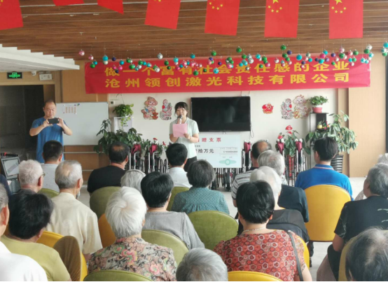 领创激光自入驻沧州基地以来,受到了沧州政府及当地人民的支持和帮助,而一个企业的发展,不仅是简单的谋生存,还应积极承担社会责任,为社会做出应有的贡献。借这次养老院捐赠机会,将公司的一份力量回馈社会,表达领创对沧州人民及政府的感谢和支持。