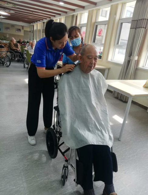 领创激光团队为老人理发