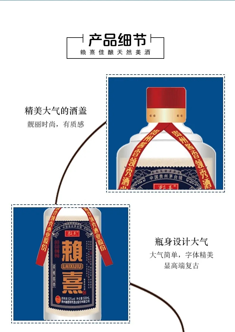 赖熹柔雅酱香型白酒以赤水河河水为魂,以当地糯高粱为骨,居中国酒都茅台镇15平方公里核心产区内,通过古法酿造工艺与现代科技相结合,历经两次投料、九次蒸煮、八次发酵、七次取酒,精心酿造出传世美酒。