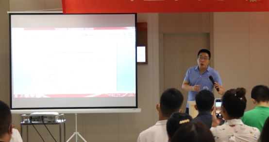 会议开始,程总代表集团董事长对普惠铁军全体致以诚挚问候,殷切期望,同时程总对上半年的业绩做了概要总结和分析,有可喜的成绩,也有对不足的反思,随后销售总监姚总的讲话,让铁军战士们更加有力信息,因为他给销售团队带来的是更加优厚的业绩奖励政策,讲话最后姚总为全体铁军鼓了士气:“大干100天,再干7000万”的连续吼声震彻回响,让现场气氛达到了高潮!