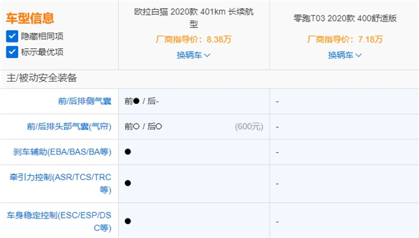 反观零跑T03,成立短短两年多时间,但官方却发布了3个平台,要知道专属平台的研发是一场人力与物力的马拉松,是需要不断研究实验的过程,像零跑这样如此频繁地发布平台,实在让人对平台的品质以及安全性有些存疑。所以在平台技术支撑这里,零跑T03仍需要好好打磨。此外,零跑T03不仅只搭载了2个安全气囊,同时刹车辅助、车身稳定控制等功能也集体缺席。平心而论,在安全领域,零跑T03还有很长的一段路要走。
