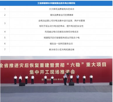 2020年两会发布的《政府工作报告》,将新基建的内容中“建设充电桩”扩展为“增加充电桩、换电站等设施”。这是换电首次被写入政府工作报告。7月,工信部副部长辛国斌在国新办发布会上细数了车电分离的七大好处: