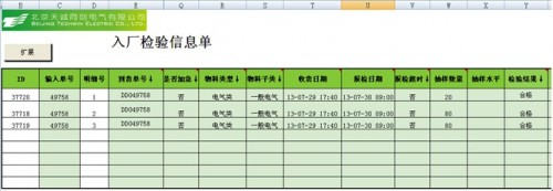 天诚同创入厂检验可从ERP系统中读取物料到货信息,质检员只需填写实际检验情况,降低了检验员工作量。