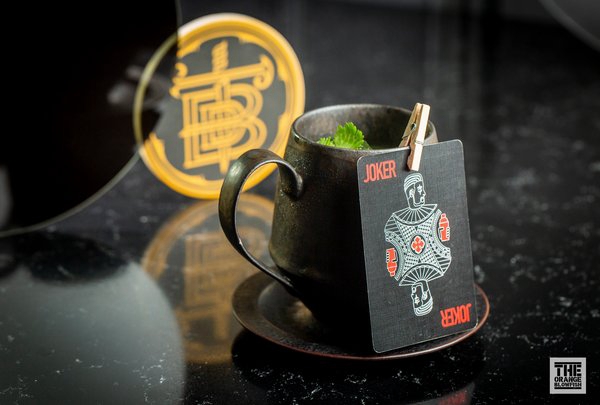 定制设计的扑克牌纸牌伴随God of Gamblers鸡尾酒送上餐桌