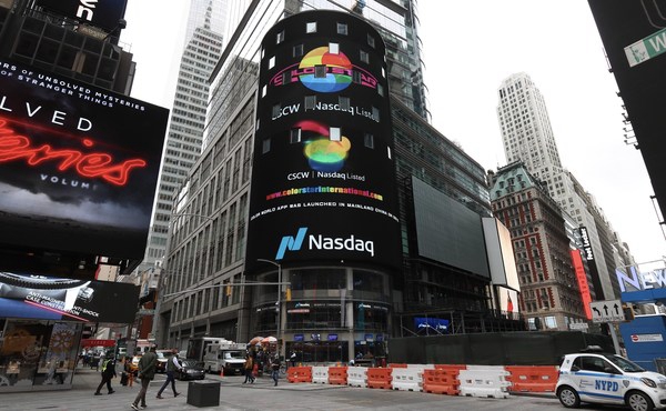 彩色星球科技登上纳斯达克大屏