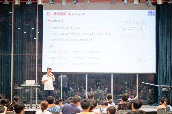 学校邀请到荟同学生家长何先生,同时也是航空科技公司负责人,率领他的专业团队为孩子们带来一场充满科技感的、兼具学术性与趣味性的互动讲座。讲座由全国航模锦标赛冠军钱凡烽叔叔为同学们开启,他通过自己的亲身经历分享了对航天事业的热爱。