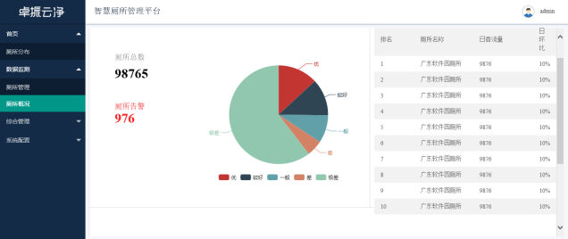 一张图管理—通过一张图(结合GIS),实现全局数据监管,实现公厕智慧化管理。
