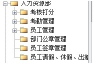 包括考核打分、考勤管理、部门公章管理、员工签章管理、员工请假、休假、出差管理人力资源管理系统, 通过提高内部员工的满意度、忠诚度,从而提高员工贡献度,即绩效,帮助管理者通过有效组织管理降低成本和加速增长来创造价值链利润。人力资源综合管理解决方案从人力资源管理的角度出发,用集中的数据将几乎所有与人力资源相关的信息(包括:组织规划、人事在职离职档案、员工履历、考勤管理、员工请假休假出差、领导审批等)统一管理起来。