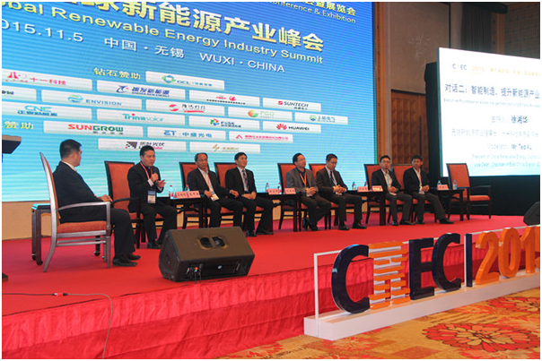 5日下午,大会组织了关于《智能制造,提升新能源产业质量和效益》的对话环节,无锡新能源商会理事长、十一科技常务副院长、华东区总裁徐湘华主持对话,蒋锡培与振发新能源科技发展有限公司副总裁张甲典;西安隆基硅材料有限公司董事长钟宝申;浙江正泰新能源开发有限公司总经理仇展炜;华为智能光伏电站解决方案总经理许映童;中盛集团常务副总裁郭振海;上能电气有限公司副总经理李建飞七位企业家代表出席对话。