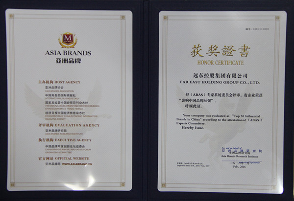 远东控股集团荣获“2015影响力中国品牌50强”