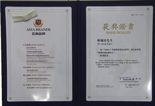 近日,2015亚洲品牌年会在菲律宾克拉克温泉度假城隆重举办。会上,“2015影响中国品牌50评选结果揭晓,远东控股集团与阿里巴巴、海尔集团、中国工商银行等品牌一同上榜,集团董事局主席、首席执行官蒋锡培荣获“2015影响中国品牌50。集团高级顾问龚苗林代表远东参会并上台领奖。