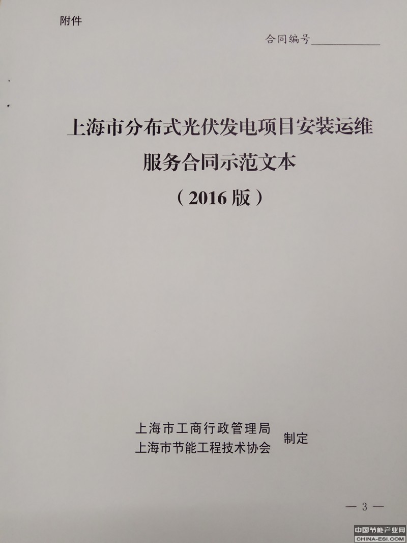 为规范分布式光伏发电安装运维行为,维护合同双方当事人的合法权益,促进新能源行业健康有序发展,根据《中华人民共和国合同法》等有关规定,上海市工商行政管理局、上海市节能工程技术协会联合制定了《上海市分布式光伏发电项目安装运维服务合同示范文本(