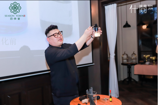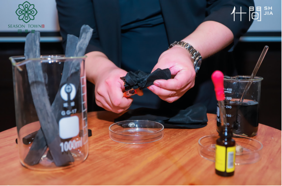 随后,四季堂品牌CEO陶科名先生发言,在会议当场发布了四季堂新系列的新产品,并介绍了的品牌愿景——“打造国内新汉方护肤第一品牌”,并对四季堂产品进行了现场实验。陶先生在一个烧杯中添加了水和碘伏,随后放入一张四季堂面膜系列产品的膜布,几分钟后,这杯棕色的液体又变回了澄清,水中的碘伏分子被四季堂面膜布全部吸附。四季堂面膜系列产品中的膜布添加了被誉为“黄金碳”的日本纪州备长炭,其中有无数细小空隙可以吸附脏物,释放养肤负离子,在场的所有嘉宾都共同见证了四季堂面膜产品系列的优秀品质。