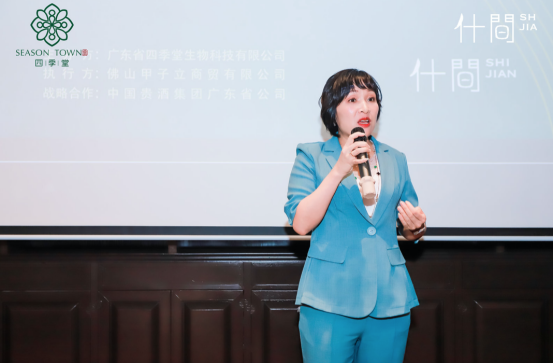 “520致爱她·四季堂女性力量商业见面会”首先由喻雄英女士(佛山汨罗商会名誉会长、广东金融城商会名誉副会长、佛山市顾全行业协会副会长、广东省投资发展促进会理事、千灯资本集团创始人总裁)开场致辞,除了介绍四季堂“新汉方,轻养肤”的产品理念,还道出了品牌方四季堂选择在520当天举办商业活动的深层寓意:“当代女性不仅爱别人,也要好好爱自己,为自己的事业拼搏出一片天空”。