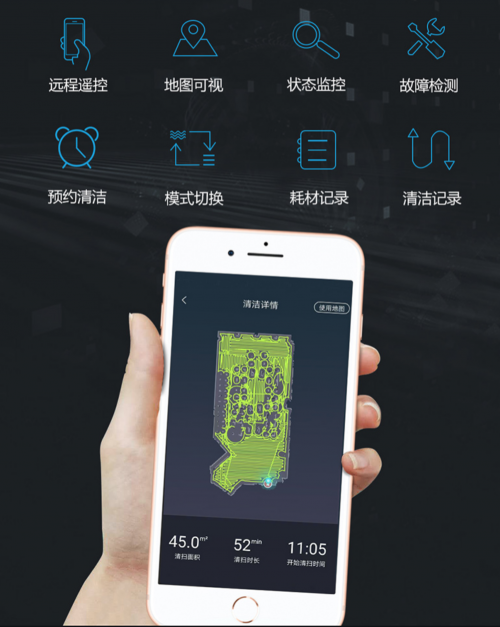 斐纳TOMEFON扫地机器人APP拥有多种功能,让用户在控制扫地机器人清扫的时候更加得心应手,比如预比如远程遥控、地图可视、状态监控、故障检测、预约清洁、模式切换、耗材记录、清洁记录等。除此之外,斐纳TOMEFON扫地机器人的APP还能进行个性化定制,自由切换房间逐一清扫、选区清扫、扫拖禁区设置、划区清扫、2次深度清扫、变频清扫六种清扫模式,可适应用户的各种清洁需求。