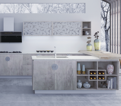 简约的视觉设计并不代表简单的功能实现,醉花间有着现代厨房该有的一切功能。人机工程学半高柜内嵌拉篮,充分扩展地柜的存储空间,打开柜门后层板中会有晶莹的灯光自动亮起,非常方便使用;岛台配置了获得专利的独特工艺田字柜,增大储物空间同时又便于主人拿取东西,这里还是一个小型的开放式酒柜,随着人们生活水平的提升,酒柜也成为了家庭标配,闲暇时独自小酌或是三五好友对饮,颇有追访古人“醉卧花间”的风流;