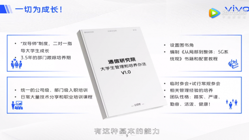vivo通信研究院成立之后,始终坚持“两手抓”,一边广泛招收行业一流人才,扩充研发队伍;一边积极吸纳优秀应届毕业生,通过以老带新的方式,为标准化研究和通信技术创新培养新生力量。