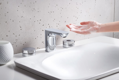 科勒利奥三孔感应脸盆龙头: 免触洗手,预设温度流量,88mm高度的极简设计,为生活留出更多自由空间。