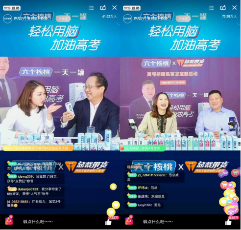 2019年,六个核桃新签约国际钢琴大师郎朗为品牌代言人,凝练出全新的品牌内涵及宣传语,同时开展“高考季”、“春节”等系列整合传播战役,为品牌升级持续赋能,并获得了社会的一致好评。与此同时,进入2020年,六个核桃将加速移动互联网领域布局,持续推出包含话题、互动、IP在内的多种营销方式,实现与新消费群体的对话,已达到对品牌价值的共鸣。