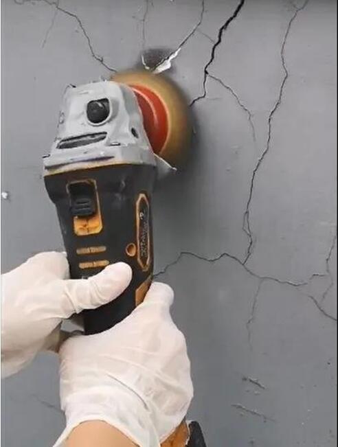 1)沿裂缝走向,在裂缝中插入作为临时标志的钢钉或其它标识,标识与裂缝的距离应保证再对裂缝进行打磨处理之后能准确的找到裂缝位置为宜。然后对裂缝两侧各100mm的范围进行打磨,直至露出坚实的骨料新面;