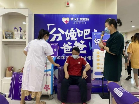 为了缓解患者及家属等待的焦虑心情,医院在一楼门诊大厅放置电视投屏。同时,在二楼产科门诊设置分娩镇痛体验仪缓解家属与孕妇面对分娩的紧张情绪,也能让家属理解孕妇分娩的不容易。