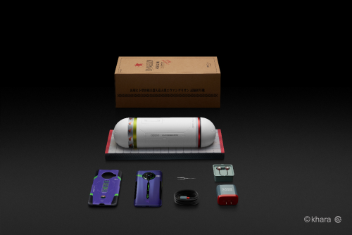 在细节上,它不但定制了类似打开Nerv机密文件的快递包装,还设计了一个配备插入栓的EVA机体包装盒,完全巅峰一般的设计理念,就连卡针也设计成了朗基努斯之枪的模样。在重要的机身设计上,借用初号机的概念,整体紫色机身,摄像头类似圆形的机体和眼睛,四角各有的三个对称黑点则来自初号机的胸口、腿部6点,手机背部通过设置立体棱线,形成上半部宽、腰收窄的效果,完全贴合初号机的腰线效果。
