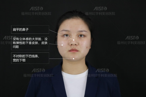 术前状态:鼻翼肥大、下颚宽、额头扁平