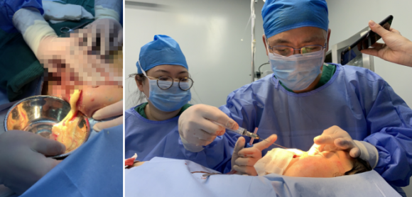 来自河南的李女士在2009年被美容院忽悠注射了奥美定,当时医院说是玻尿酸,过3—5年就吸收了,当时李方奇院长哭笑不得,告诉她“玻尿酸都是半年到一年就吸收了”,她说当时不知道,只听说注射了这个能变美。然后她继续介绍,2015年的时候右侧乳房有点发热发肿,然后就做了取出,当时以为取干净了。后来在网上看到不做奥美定取出的危害,自己也害怕到医院做检查,检测结果是胸部还有很多奥美定残留物,才知道当时注射的不明注射物还没有取干净。