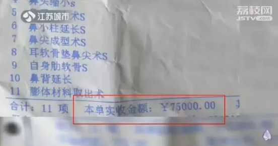 今年3月23号,小王花了7.5万元在南京鼓楼区凤凰台酒店24楼一家美容整形机构进行了鼻综合手术。