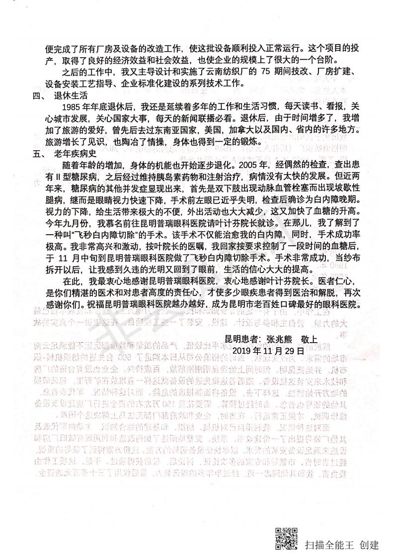昆明患者:张兆熊 敬上