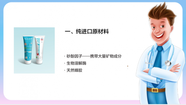 我们都知道氟参与构建牙釉质和骨盐,但体内氟含量过高时可引起氟中毒。氟中毒不仅影响骨骼和牙齿,而且还会影响到中枢神经、内分泌和生殖等多个系统。但是我们可以很骄傲的告诉大家,我们的这款牙膏是不含氟的,这就证明,我们把这种不利于牙齿的隐患意境排除在外乐,为各位消费者购买我们的产品更添一份安心。