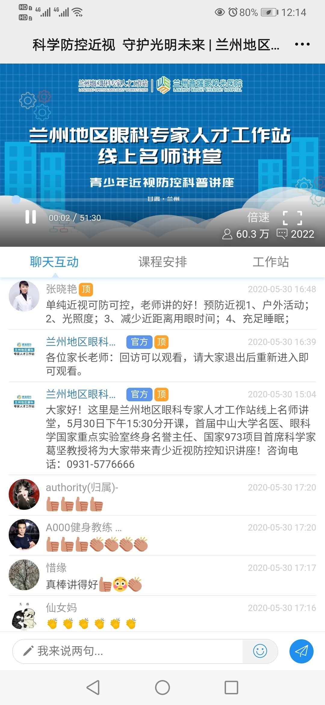 活动由兰州普瑞眼视光医院的张晓艳主任担任主持人,覆盖兰州市各个中小学,截至6月3日,60多万人进行了在线观看,同学们普遍表示受益匪浅。