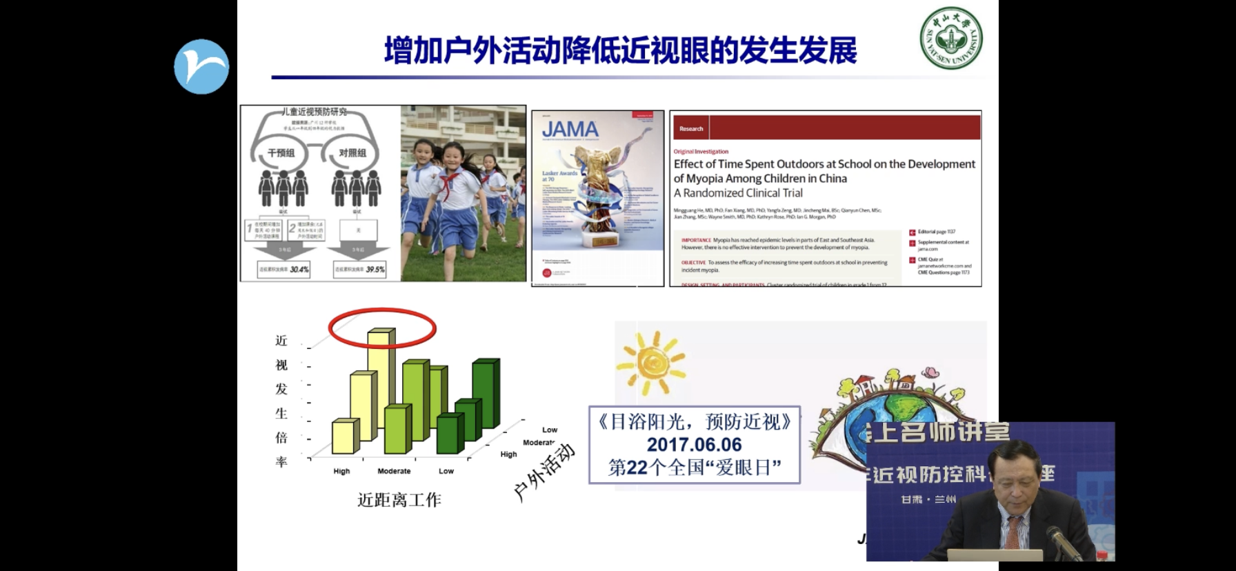 讲座中,葛坚教授强调,做好近视防控需要加强青少年户外运动、目浴阳光及保证昼夜节律。