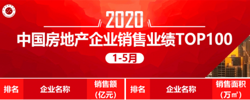 图:中指研究院《2020年1-5月中国房地产企业销售业绩TOP100》