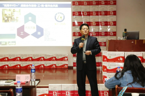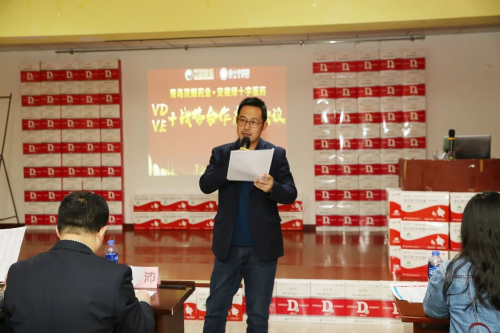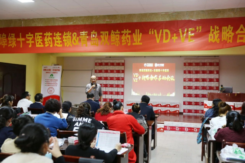 青岛双鲸药业安徽省区负责人张沛在致辞中介绍了“VD/VE+”的内涵,并结合与各大主流连锁药店的合作佳绩,全面阐述了两款产品百搭增量等各项优势。张总强调,专业是基础,利他是根本,相信此次合作必将实现工、商、客三方共赢。