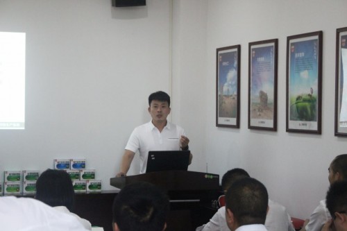 华北大区经理蒙艳妮在会上分享公司《产品PPT推介》,以加深营销战士对公司及产品的理解,方便为各合作伙伴服务。