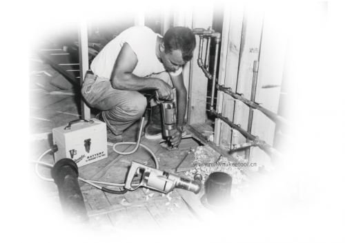 1949年,设计生产了工业级½″直角钻,这是可以让电工和管道工在受限环境中进行作业的工具。