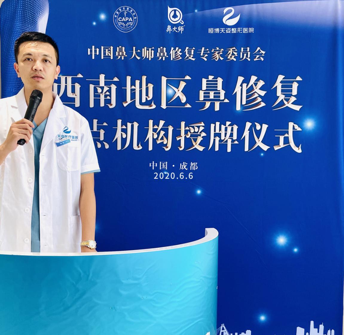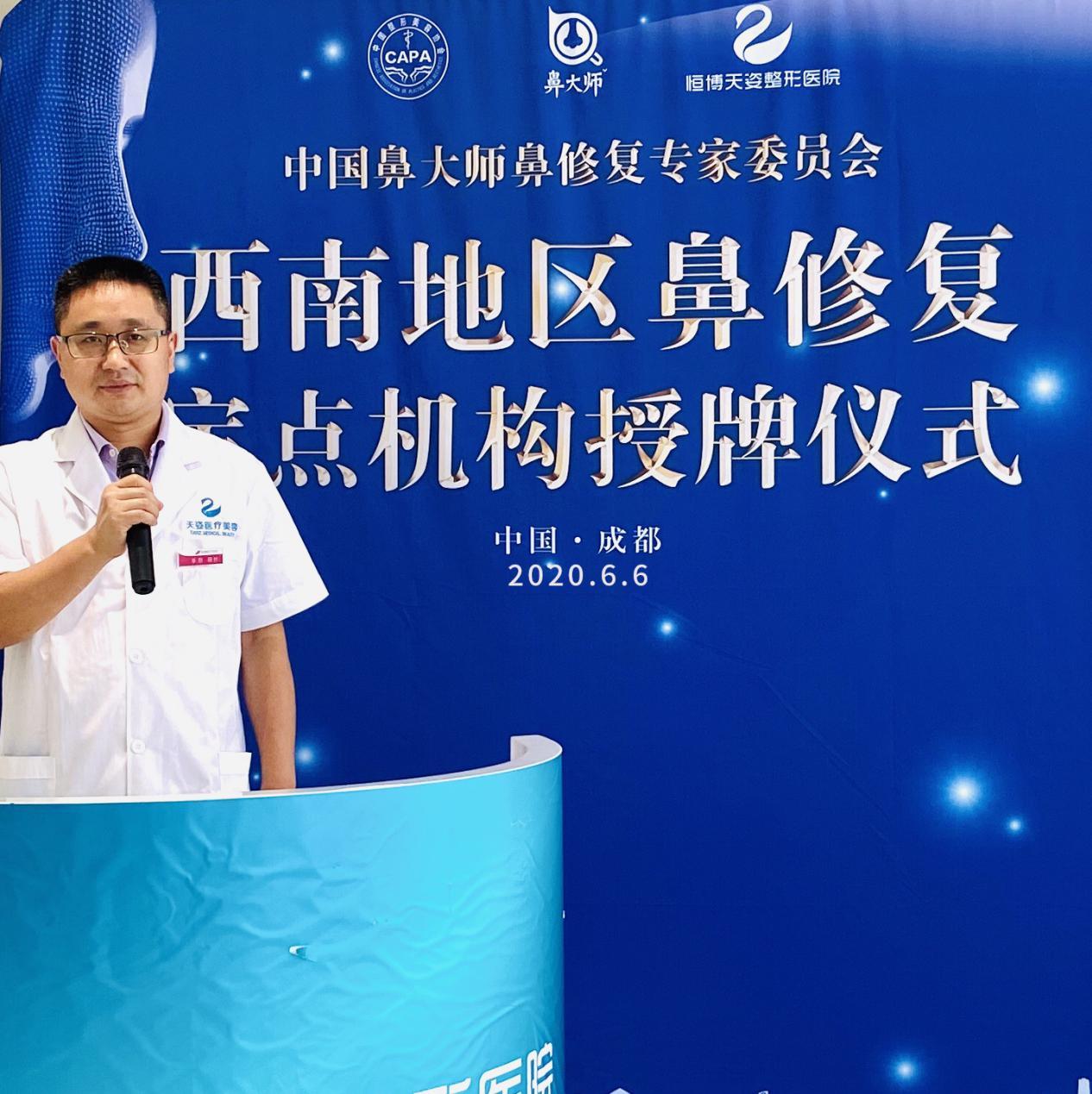 肖凌院长任命仪式完毕后,《中国鼻大师鼻整形专家委员会》西南地区鼻整形与修复示范服务机构授牌仪式,成都恒博天姿医疗美容正式成为《中国鼻大师鼻整形专家委员会》西南地区鼻整形与修复示范服务机构。