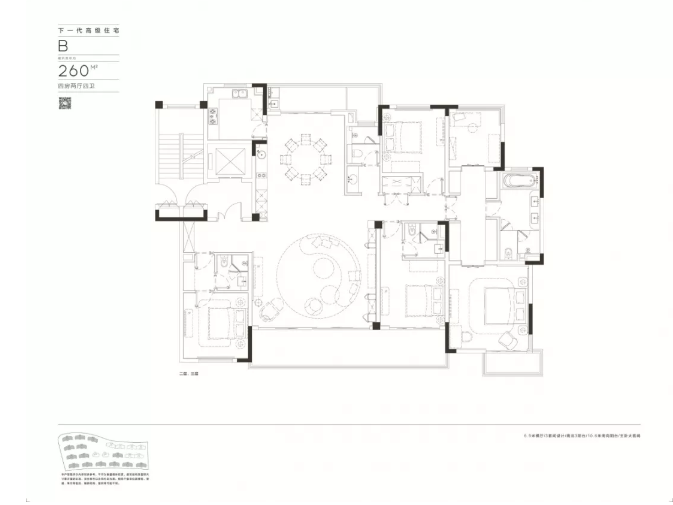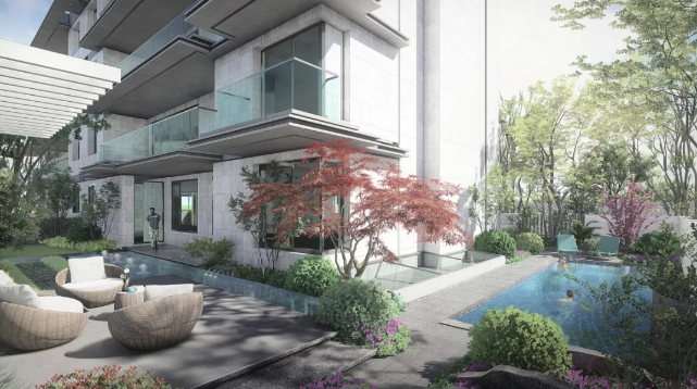 会客厅考虑到它的场域感与社交性,整个观景阳台宽度做到了10.6m;建筑的转角处,让每一个主卧都拥有独立的生活阳台,视野与光线进一步延伸,使得这间房间也具有着与主人相称的豁然开朗的气势。在建筑的背部,同样拥有望向群山视野的北阳台,外凸的深度恰好使得它能够胜任家政与休憩的双重职能。