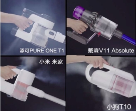 从图可以看到,除了戴森,其他的三款产品都会有白色的烟雾喷出,也就是说这些产品没有办法真正的有效过滤脏东西。